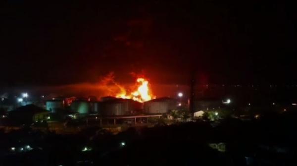 Dalam tayangan rekaman video amatir dari udara, tampak api membakar dengan dahsyat. Jarak tanker dengan tangki penyimpanan BBM Depo Pertamina sangat dekat, karena saat kejadian kapal sedang sandar untuk melakukan pemindahan BBM.