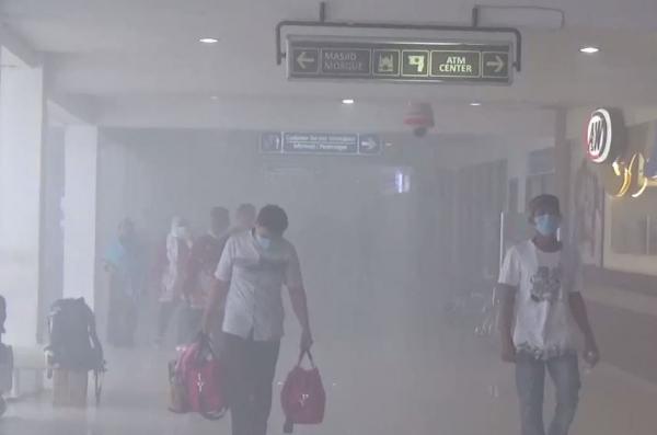 "Jarak pandangnya terbatas dan sangat pendek hingga menyelimuti kawasan bandara. Landasan pacu yang berjarak 300 meter dari terminal keberangkatan sama sekali tidak terlihat," ucapnya.